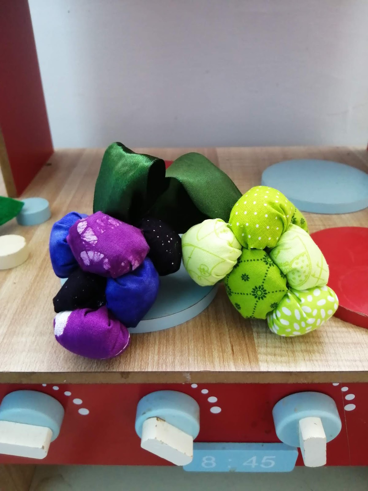 A lovely little human recently had her first birthday. Her talented mother made her a play kitchen for her birthday present out of recycled materials. So I thought she needed some upcycled play food to go with it. I made 5 little bits.